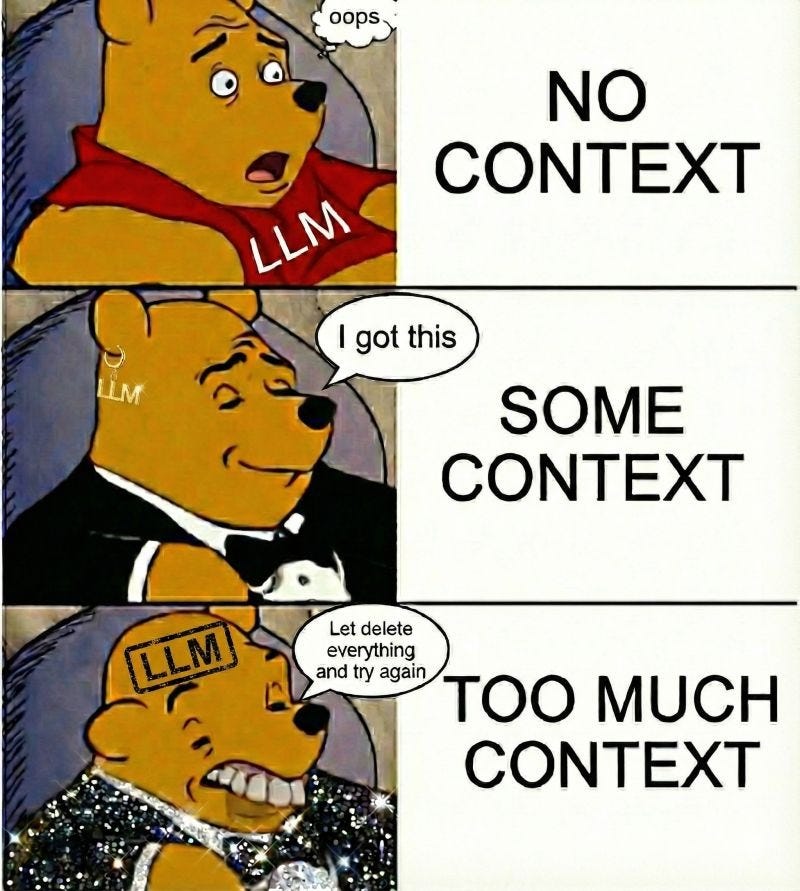 At the end of the day, LLMs too have similar behaviours, "Garbage in, garbage out". To have a better performance, context is gold. However, I am just discovering about providing too many information and how it can unsettle the model.